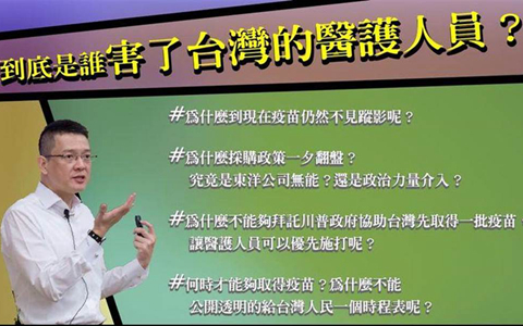 第二,去年圣誕節(jié)前夕,臺(tái)灣就可以借由臺(tái)灣東洋藥品公司取得第一批200萬(wàn)劑疫苗,供醫(yī)護(hù)人員施打,為什么采購(gòu)政策一夕翻盤?究竟是東洋公司無(wú)能?還是政治力量介入?
