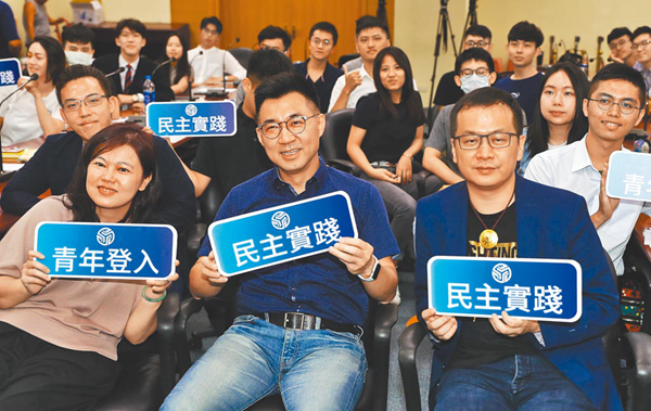 傳綠營(yíng)為反制藍(lán)營(yíng)“割萊委”行動(dòng),也將提罷免國(guó)民黨主席江啟臣(前排中)、羅智強(qiáng)(前排右)、謝龍介等人。(圖片來(lái)源:臺(tái)灣“中時(shí)新聞網(wǎng)”)