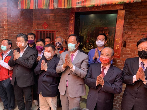 王金平今和郭臺(tái)銘合體前往新北土城順圣宮參拜。(圖片來(lái)源:臺(tái)灣“中時(shí)新聞網(wǎng)”)