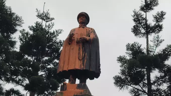 基隆蔣介石銅像拆除前夕遭噴漆 曾多次遭破壞。(圖片來自臺媒)