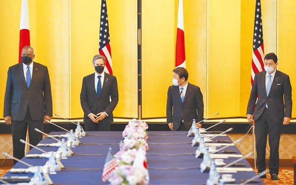 中國臺灣網(wǎng)3月22日訊 日本《共同社》21日報道稱,在美國拜登政府上臺后首次于16日舉行的日美防長面對面會談中,雙方對臺?赡馨l(fā)生的“不測事態(tài)”表達關(guān)切,還確認在臺灣突發(fā)事態(tài)之際將密切合作,宣稱大陸若武力“攻臺”、美軍馳援臺灣,日本自衛(wèi)隊將考慮提供協(xié)助。日本防衛(wèi)大臣岸信夫與美國國防部長奧斯汀出席了會談。
