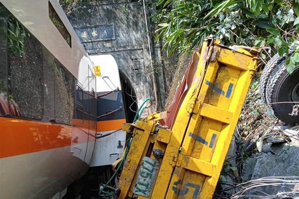 臺(tái)鐵列車被工程車砸出軌卡隧道 4人無生命跡象