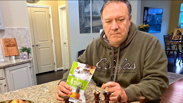 作秀!蓬佩奧吃臺(tái)灣菠蘿干 臺(tái)外事部門暗示其訪臺(tái)幾率很大。(圖片來自臺(tái)媒)