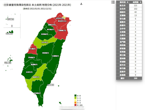 根據(jù)臺“疾管署”網(wǎng)站信息,今年至今共有288例本地病例,全臺最多確診出現(xiàn)在新北市的121人,其次依序?yàn)榕_北市102人、桃園市42人、宜蘭縣13人、彰化縣6人、基隆市2人、高雄市1人、臺中市1人。