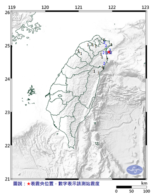 中國(guó)臺(tái)灣網(wǎng)5月19日訊 據(jù)臺(tái)灣“中時(shí)新聞網(wǎng)”報(bào)道,臺(tái)灣近日停水、停電、疫情爆炸,現(xiàn)在又有地震。今天下午13:00,宜蘭近海發(fā)生規(guī)模4.1級(jí)地震,地震深度13.5公里,震中在宜蘭縣政府東偏北方15.9公里,位于宜蘭縣近海,各地最大震度為宜蘭縣3級(jí)、新北市2級(jí),基隆市、花蓮縣、桃園市、新竹縣1級(jí),臺(tái)北也有感。