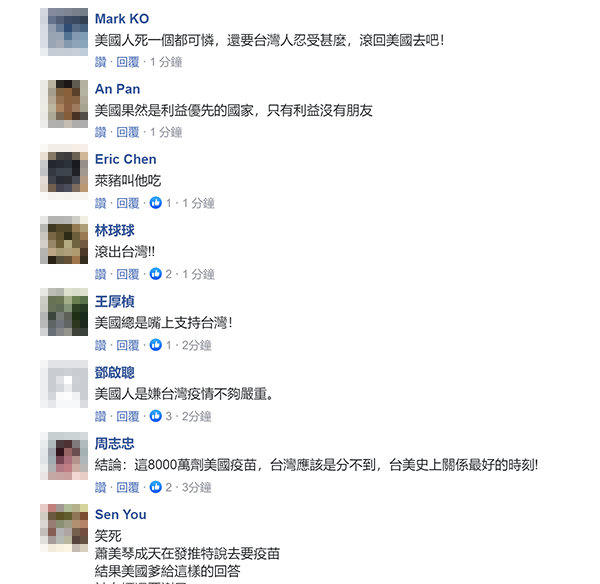 對(duì)于酈英杰的言論,島內(nèi)網(wǎng)友怒罵,“美國(guó)人是嫌臺(tái)灣疫情不夠嚴(yán)重”“美國(guó)總是嘴上支持臺(tái)灣”“美國(guó)果然是利益優(yōu)先的國(guó)家,只有利益沒有朋友”,更有網(wǎng)友諷刺“真是臺(tái)美史上關(guān)系最好的時(shí)刻”。(中國(guó)臺(tái)灣網(wǎng) 吳怡)