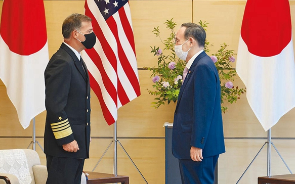 日本首相菅義偉1日與訪日的美國印太司令部司令約翰·阿奎利諾會面。