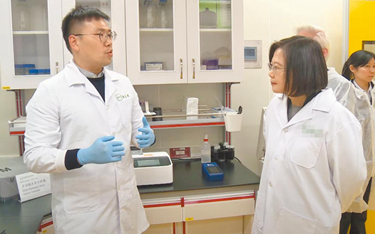 圖為蔡英文此前前往新竹視導(dǎo)高端疫苗公司。(圖片取自臺媒)
