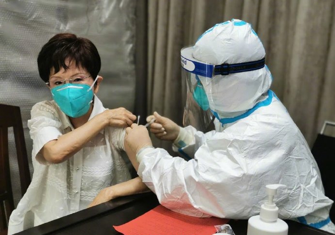 洪秀柱等臺灣知名人士專程赴大陸接種新冠疫苗。(圖片源自網(wǎng)絡(luò))