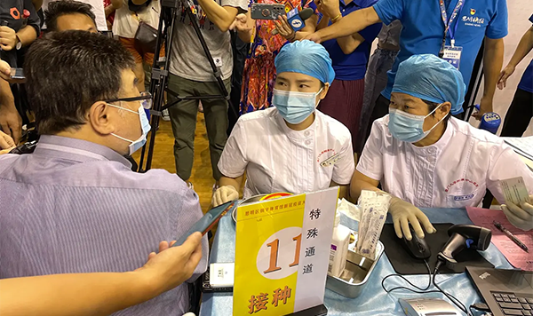 據(jù)邱毅介紹,此次接種的疫苗是北京科興的滅活疫苗,第二劑預(yù)計(jì)將在8月1日以后施打。