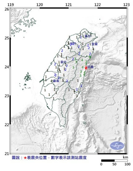 - 臺(tái)灣花蓮縣一夜發(fā)生13起地震 規(guī)模從3.1級(jí)到5.4級(jí)