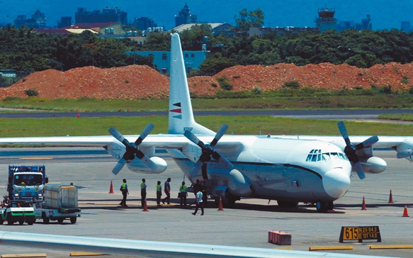 美C-130運輸機19日降落臺灣桃園機場。(圖片來源:臺灣“中時新聞網(wǎng)”)