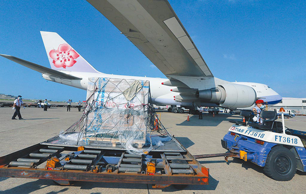 臺灣自購的9.96萬劑莫德納疫苗8日抵臺。(圖片來源:臺灣“中時新聞網(wǎng)”)