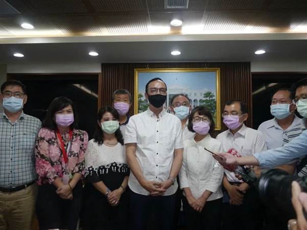 朱立倫(左四)今天拜會高雄市議會。(圖片來源:臺灣《聯(lián)合報》)