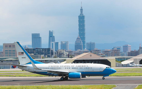 美國多名聯(lián)邦參眾議員昨日搭專機竄訪臺灣。圖為去年美國衛(wèi)生部長訪臺后返美所搭乘的行政專機。(圖片來源:臺灣“中時新聞網(wǎng)”)