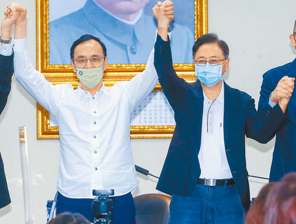中國國民黨18日召開中常會,征召張善政(右)參選桃園市長。(圖片來源:臺灣“中時新聞網(wǎng)”)