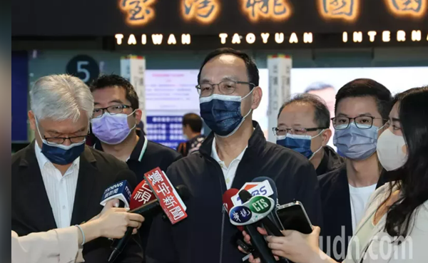 中國(guó)國(guó)民黨主席朱立倫(中)啟程赴美。(圖片來源:臺(tái)灣《聯(lián)合報(bào)》)