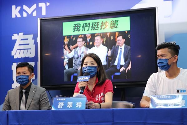 中國(guó)國(guó)民黨桃園市議員舒翠玲(中)、新竹市議員參選人吳旭豐(右)、何志勇(左)25日召開記者會(huì),指前新竹市長(zhǎng)林智堅(jiān)的碩士學(xué)位雙雙遭臺(tái)灣大學(xué)、臺(tái)灣中華大學(xué)撤銷,要求蔡英文、鄭文燦、鄭運(yùn)鵬等當(dāng)初力挺他的人出面向全民道歉。(圖片來源:臺(tái)灣“中時(shí)新聞網(wǎng)”)
