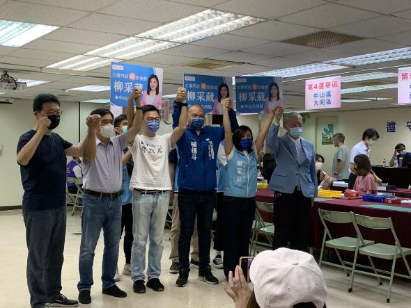 趙少康(左一)、郝龍斌(左二)等今天陪同中國國民黨議員參選人前往臺(tái)北市選委會(huì)登記。(圖片來源:臺(tái)灣《聯(lián)合報(bào)》)