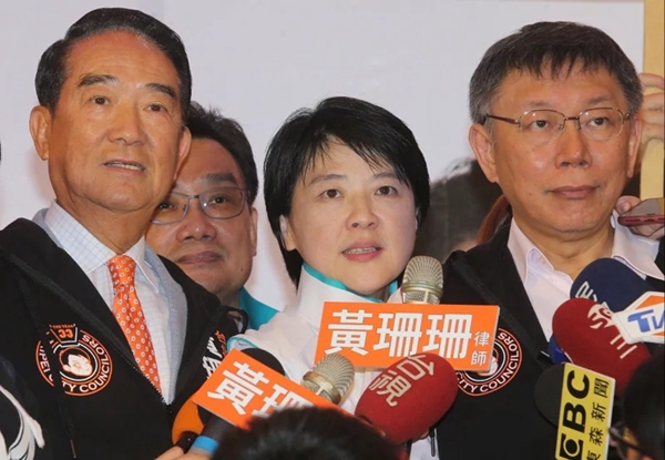 親民黨主席宋楚瑜(左)、臺北市前市長柯文哲(右)、臺北市前副市長黃珊珊(中)。 (圖片來源:臺灣《聯(lián)合報》)