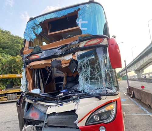 臺(tái)灣一輛載有45人客運(yùn)車追撞大貨車 3人受傷