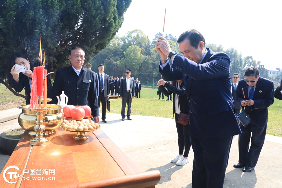 祭祖儀式遵循當(dāng)?shù)厥来幸u的習(xí)俗,鳴炮之后,馬英九和家人行三上香禮。(中國(guó)臺(tái)灣網(wǎng) 尹賽楠 攝)