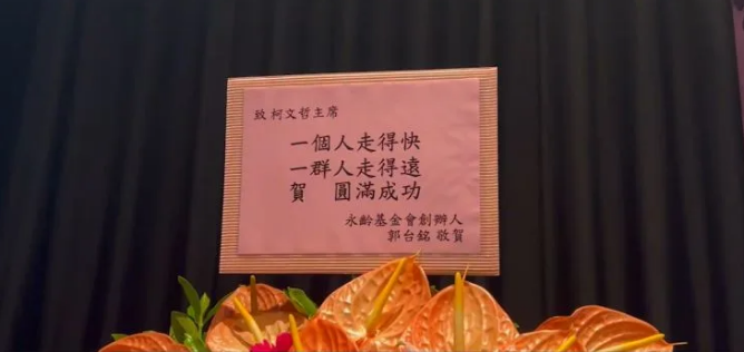 中國臺灣網(wǎng)8月1日訊 據(jù)臺媒報道,民眾黨2024臺灣地區(qū)領(lǐng)導(dǎo)人選舉參選人柯文哲7月29日下午舉辦的“KP SHOW”演唱會,臺灣鴻海集團創(chuàng)辦人郭臺銘署名贈送花籃,賀卡上引用柯文哲過去常說“一個人走得快、一群人走得遠”作為賀詞,引發(fā)外界聯(lián)想“不放棄與柯合作”。