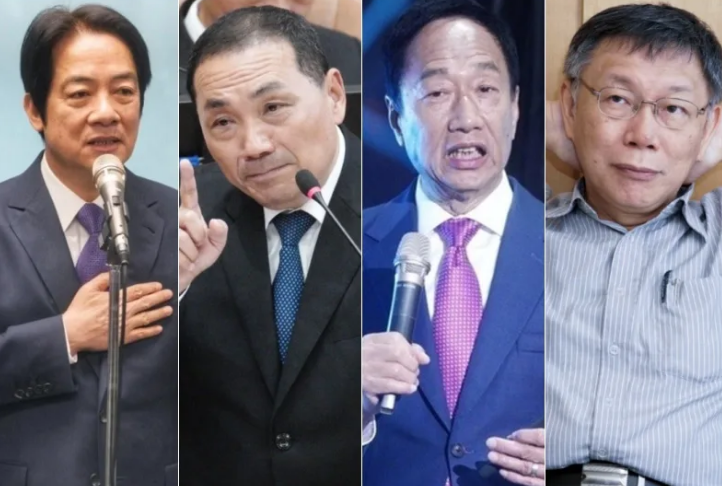 從左至右為2024臺(tái)灣地區(qū)領(lǐng)導(dǎo)人民進(jìn)黨參選人賴(lài)清德、中國(guó)國(guó)民黨參選人侯友宜、臺(tái)灣鴻海集團(tuán)創(chuàng)辦人郭臺(tái)銘、民眾黨參選人柯文哲。(合成圖,圖片來(lái)自臺(tái)媒)