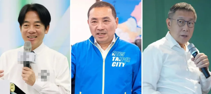 2024年臺(tái)灣地區(qū)領(lǐng)導(dǎo)人選舉民進(jìn)黨參選人賴清德、中國(guó)國(guó)民黨參選人侯友宜、民眾黨參選人柯文哲。(圖片來(lái)源:臺(tái)灣“中天新聞網(wǎng)”)