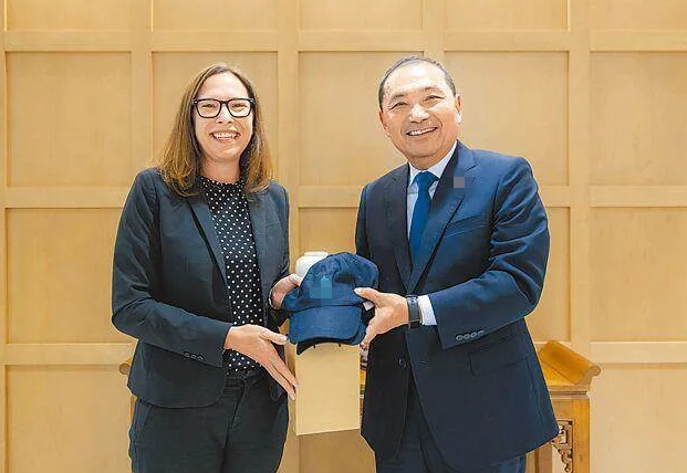 中國國民黨2024年臺灣地區(qū)領(lǐng)導(dǎo)人選舉參選人侯友宜此前訪美時曾與“美在臺協(xié)會”主席羅森伯格見面。(圖片來源:臺灣“中時新聞網(wǎng)”)