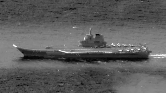 臺防務(wù)部門發(fā)布解放軍山東號照片。(圖片來源:臺灣《聯(lián)合報》)