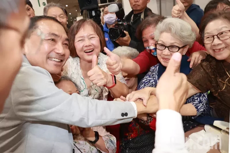 侯友宜(左)出席臺灣觀光產(chǎn)業(yè)聯(lián)誼餐會,受到與會民眾熱情歡迎,爭相上前握手合影。(圖片來源:臺灣《聯(lián)合報》)