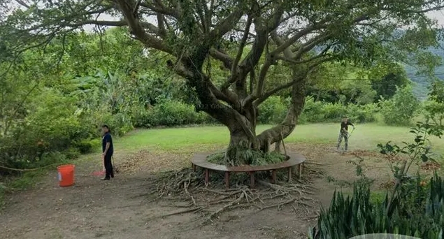 在“賴皮寮”庭院打掃衛(wèi)生的臺(tái)安全部門特勤人員。(圖片來源:臺(tái)灣東森新聞)