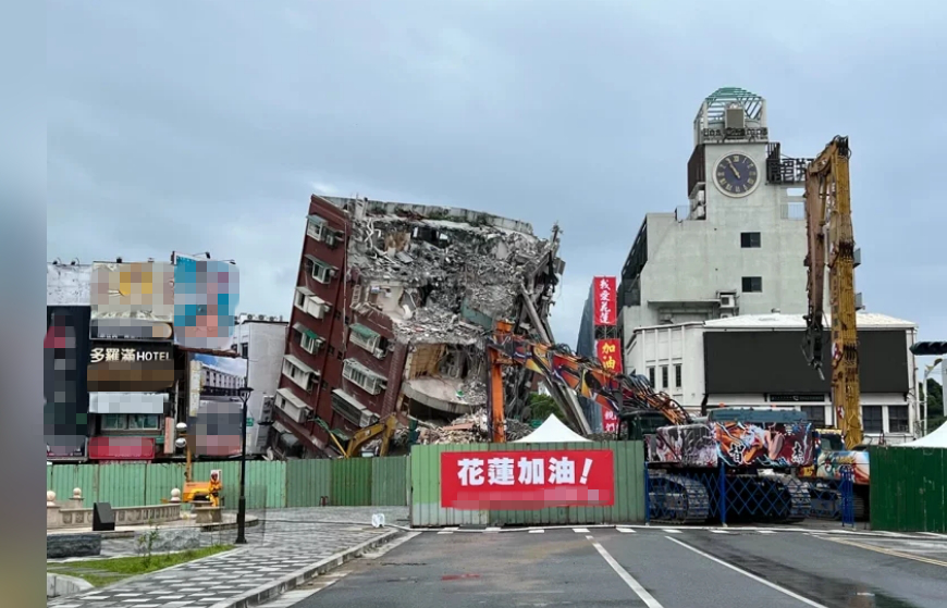 正在進(jìn)行拆除工作的花蓮天王星大樓。(圖片來(lái)源:臺(tái)灣《聯(lián)合報(bào)》)