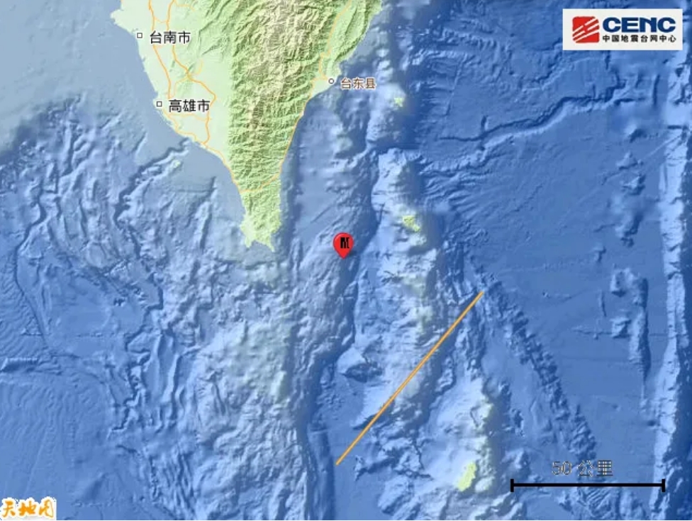 速報(bào)參數(shù):據(jù)中國(guó)地震臺(tái)網(wǎng)正式測(cè)定,7月27日19時(shí)21分在臺(tái)灣屏東縣海域發(fā)生4.5級(jí)地震,震源深度28公里,震中位于北緯21.86度,東經(jīng)121.22度,距臺(tái)灣島約36公里。