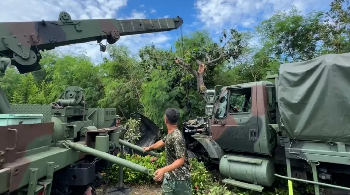 臺陸軍一中型戰(zhàn)術(shù)輪車撞樹。(圖片來源:臺灣“中央社”)