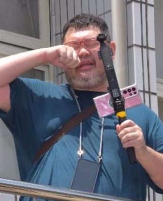 島內(nèi)網(wǎng)紅“四叉貓”劉宇與黃姓男子發(fā)生沖突后掩面哭泣。(圖片來源:臺(tái)灣“中時(shí)新聞網(wǎng)”)