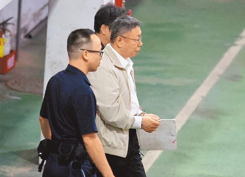 民眾黨主席柯文哲(中)涉及京華城弊案,臺(tái)北地方法院5日重開(kāi)羈押庭,裁定羈押禁見(jiàn),柯戴手銬走向囚車(chē)。(圖片來(lái)源:臺(tái)灣“中時(shí)新聞網(wǎng)”)