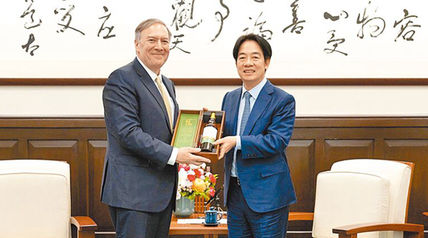 圖為蓬佩奧竄臺(tái)時(shí)與賴清德見面。(圖片取自臺(tái)媒)