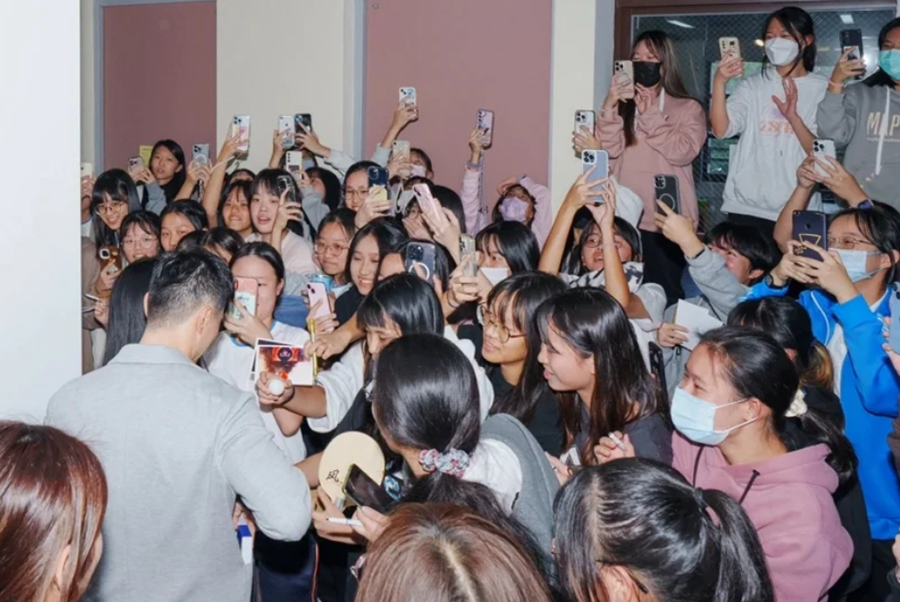 據(jù)報(bào)道,不少粉絲早早就來(lái)到校門外守候,希望一睹馬龍風(fēng)采,馬龍也和現(xiàn)場(chǎng)媒體及粉絲揮手打招呼。雖然沒有舉辦大規(guī)模的交流活動(dòng),但馬龍仍在校園里刮起旋風(fēng)。慕名而來(lái)的女學(xué)生祭出“手機(jī)!,甜喊“龍哥”,圍著他搶拍、合影,現(xiàn)場(chǎng)猶如粉絲見面會(huì)般熱鬧。