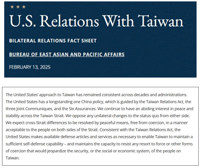 事實(shí)上,這已經(jīng)不是美國(guó)國(guó)務(wù)院網(wǎng)站首次修改相關(guān)涉臺(tái)表述,早在2022年5月,拜登執(zhí)政時(shí)期,美國(guó)國(guó)務(wù)院就曾刪除關(guān)于“承認(rèn)臺(tái)灣是中國(guó)一部分”“美國(guó)不支持臺(tái)灣獨(dú)立”等表述,但在不到一個(gè)月后,美國(guó)國(guó)務(wù)院又重新加上了“不支持臺(tái)獨(dú)”“反對(duì)任何一方改變現(xiàn)狀”以及期盼“和平解決兩岸分歧”等內(nèi)容。