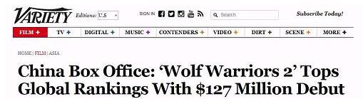 美國綜藝網(wǎng)站《Variety》對(duì)《戰(zhàn)狼2》的票房表示驚訝