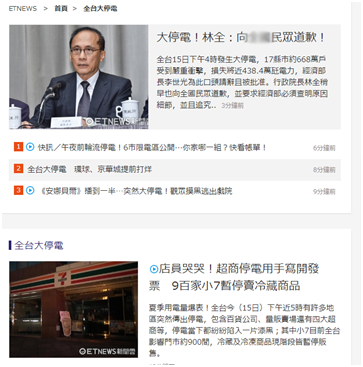臺(tái)灣《中時(shí)電子報(bào)》關(guān)于“全臺(tái)大停電”的報(bào)道截圖(部分):