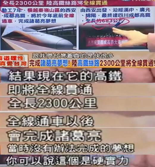 如今大陸高鐵的發(fā)展可以說(shuō)為世界的聯(lián)通帶來(lái)了便捷,雖然一些心懷叵測(cè)的“臺(tái)獨(dú)”分子有意抹黑,但仍不乏理智的民眾客觀評(píng)價(jià),比如有臺(tái)灣媒體在評(píng)價(jià)橫越秦嶺山區(qū)、全長(zhǎng)2300公里的蘭渝鐵路時(shí)就贊它“完成了諸葛亮的夢(mèng)想”: