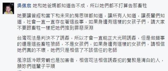 接著控訴了臺(tái)灣教育者,稱其善于利用職權(quán)誘導(dǎo)處于愛情萌芽期的學(xué)生: