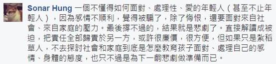 侃爺認(rèn)為,在林奕含的事件中,也許與其揪著所謂的“真相”不放,不如像下面這位網(wǎng)友所說的那樣,多去探討下社會(huì)和家庭到底應(yīng)該怎樣教育孩子面對(duì)和處理自己的感情與身體,以免下一個(gè)“林奕含式悲劇”的再發(fā)生。