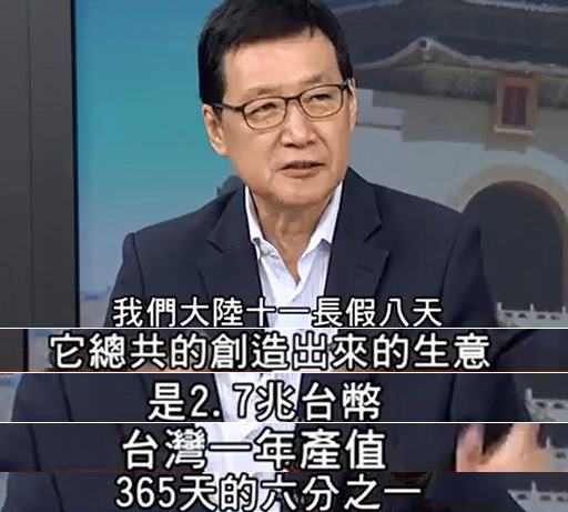 國(guó)民黨“立委”費(fèi)鴻泰就說了,大陸一個(gè)“黃金周”就能創(chuàng)造出2.7兆的產(chǎn)值,這可是臺(tái)灣一年16兆產(chǎn)值的六分之一啊!