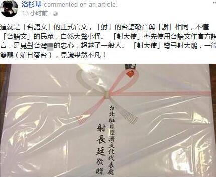 比如前不久,臺(tái)灣“駐日代表”謝長(zhǎng)廷在日本參加活動(dòng)時(shí),贈(zèng)禮竟將謝長(zhǎng)廷名字錯(cuò)成“射長(zhǎng)廷”,引發(fā)了島內(nèi)媒體的熱議,連臺(tái)灣自由作家洛杉基都酸其說:這是“臺(tái)語(yǔ)文”的正式官文,“射大使”果然不凡!