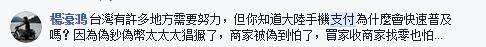 當(dāng)然,也有一些不同的聲音,比如有臺(tái)灣網(wǎng)友就說了:你們懂什么?大陸手機(jī)支付會(huì)如此快速普及,都是因?yàn)椤皞吴n偽幣太太太猖獗了,商家和買家偽到怕了”。