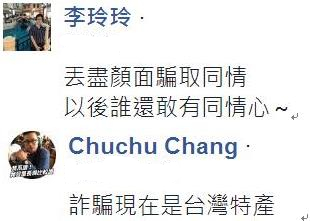 發(fā)文的這名網(wǎng)友表示“真的很丟臺灣人的臉!”,呼吁其他去大陸旅游的民眾要多注意,千萬別再受騙上當(dāng)。也有許多臺灣人表示“詐騙現(xiàn)在是臺灣特產(chǎn)”“丟盡顏面騙取同情,以后誰還敢有同情心”。